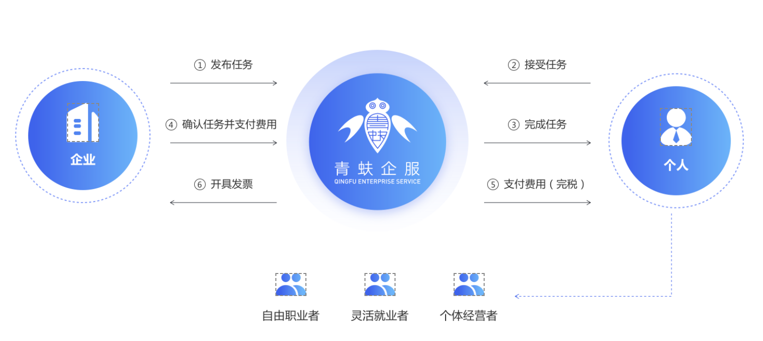企业在给灵活就业人员进行费用结算时, 企业无法取得进项发票,灵活就业个人缴税及完税困难,心念同途可为灵活就业人员一键批量支付,并依法为个人报税及完税,并为企业真实业务合规开具增值税专用发票。